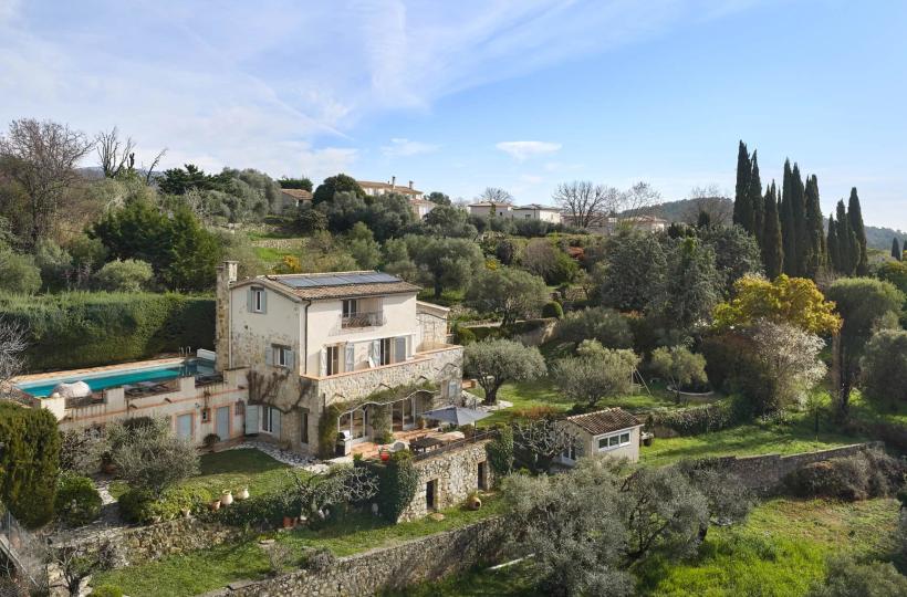Bâtie au XIXème siècle, cette résidence aux airs de maison de famille, se distingue par ses deux tours qui embrassent le corps de la bâtisse. Enveloppée de vignes qui courent le long de sa façade, étirée d’une tonnelle ombragée, cette villa à l’ADN marqué par l’esprit convivial du sud et le raffinement que le couturier Christian Dior lui édicte, fût restaurée à partir de 1955 par l’architecte André Svétchine.