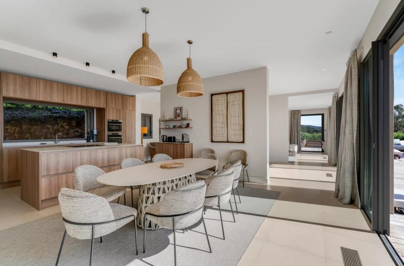 Villa située à La Croix-Valmer, à seulement quelques minutes à pied de la plage. Elle se compose de quatre chambres en suite ainsi que d’une chambre faisant office de bureau, permettant d’accueillir confortablement jusqu’à neuf convives. La villa dispose d’une salle à manger, d’un salon TV, d’un salon lecture ainsi que d’une salle de cinéma. À l’extérieur, vous profiterez d’une piscine, d’une table de ping-pong et d’une belle terrasse aménagée avec table à manger et plancha, idéale pour partager des moments conviviaux. Un garage fermé complète également les prestations de la propriété.