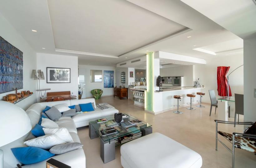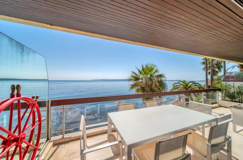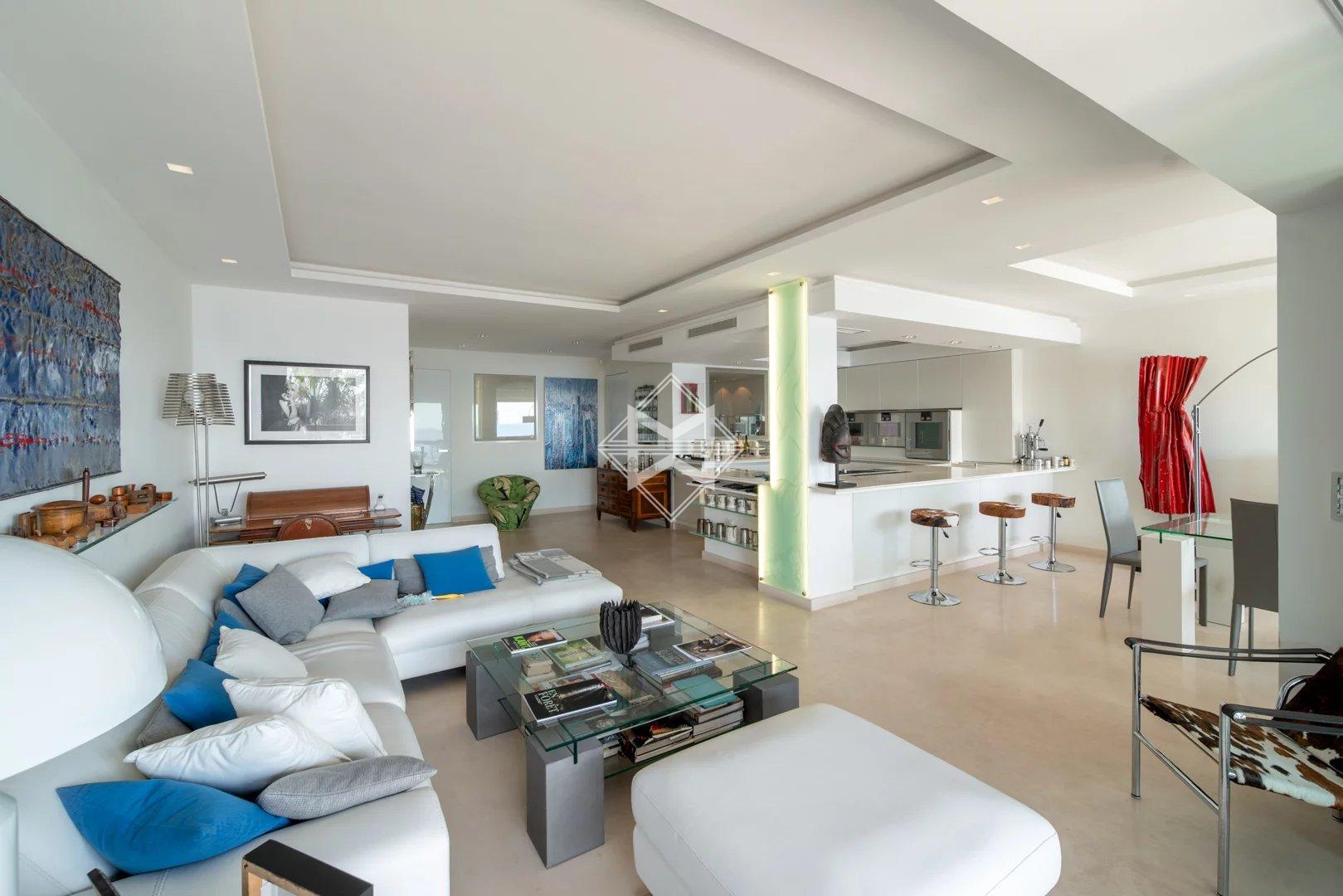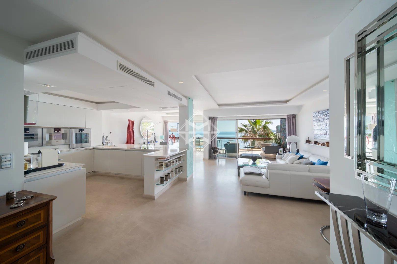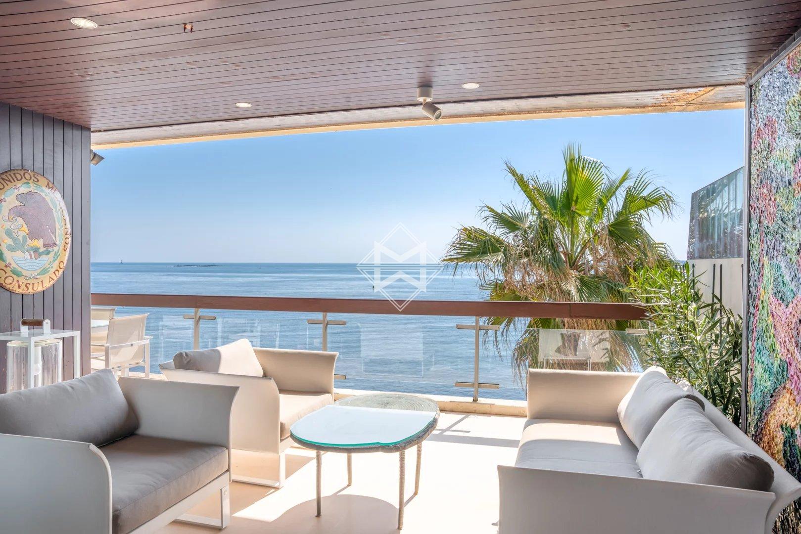 CANNES PALM BEACH - APPARTEMENT EN DERNIER ETAGE SUR LA PLAGE ET PIED DANS L'EAU - VUE MER PANORAMIQUE