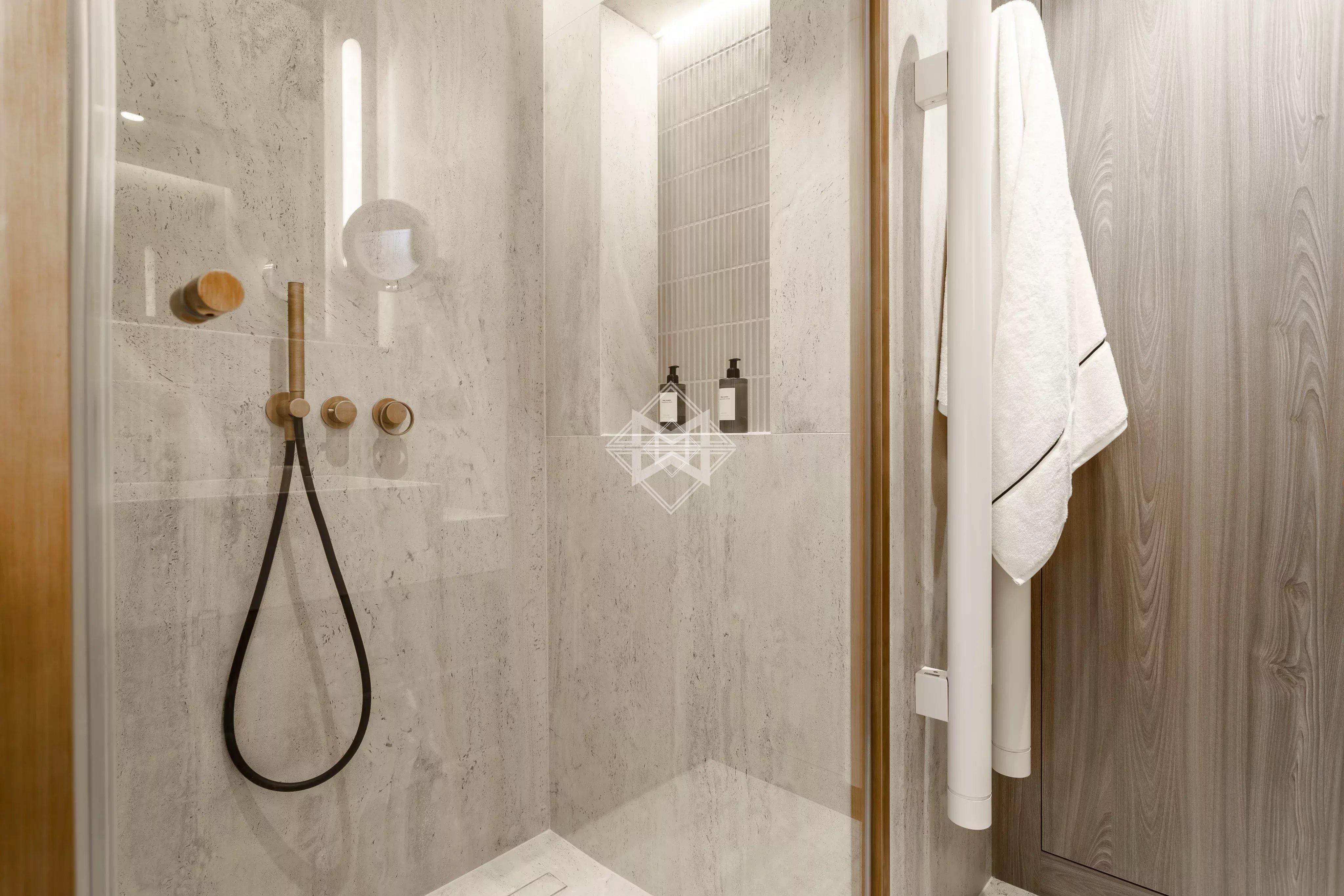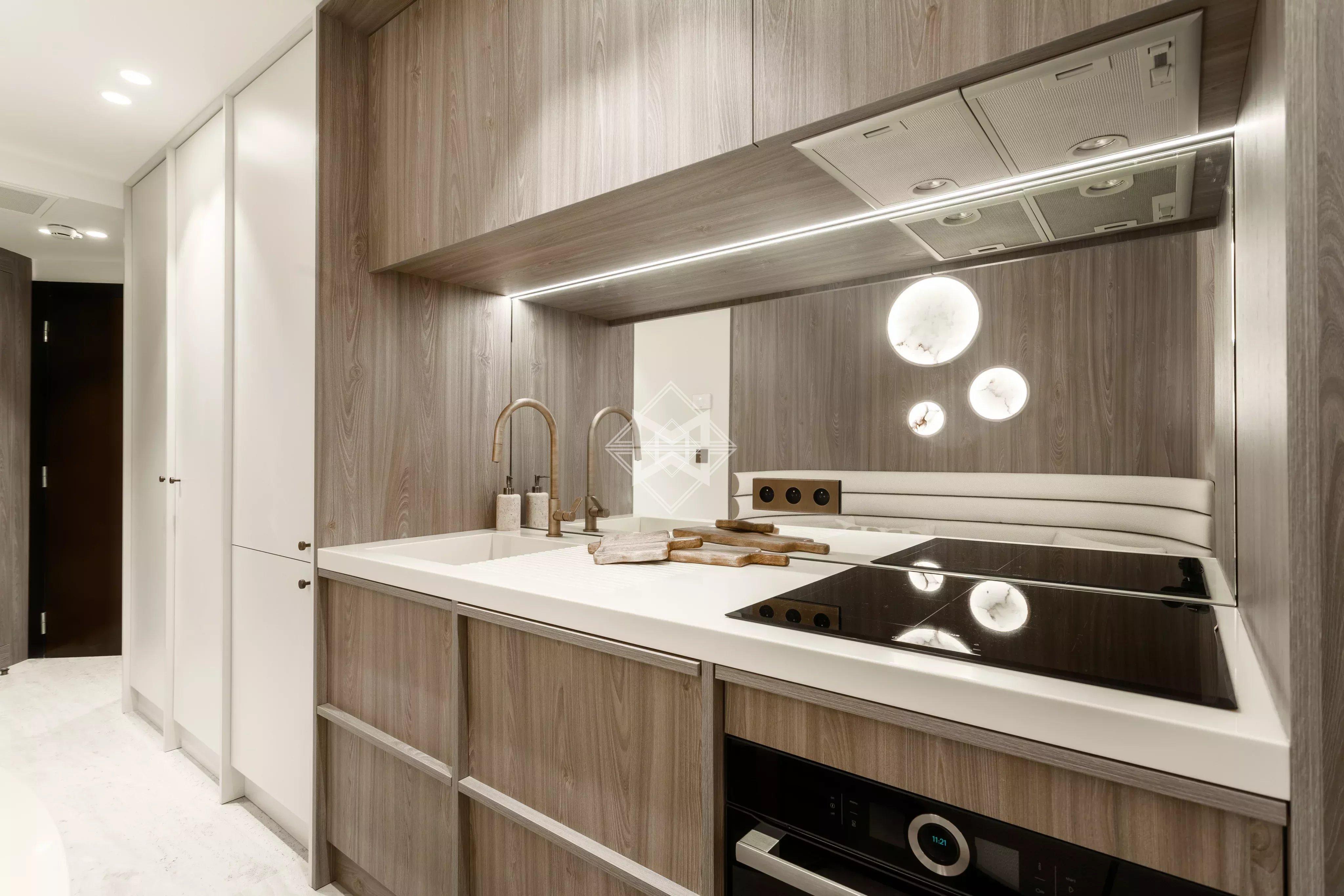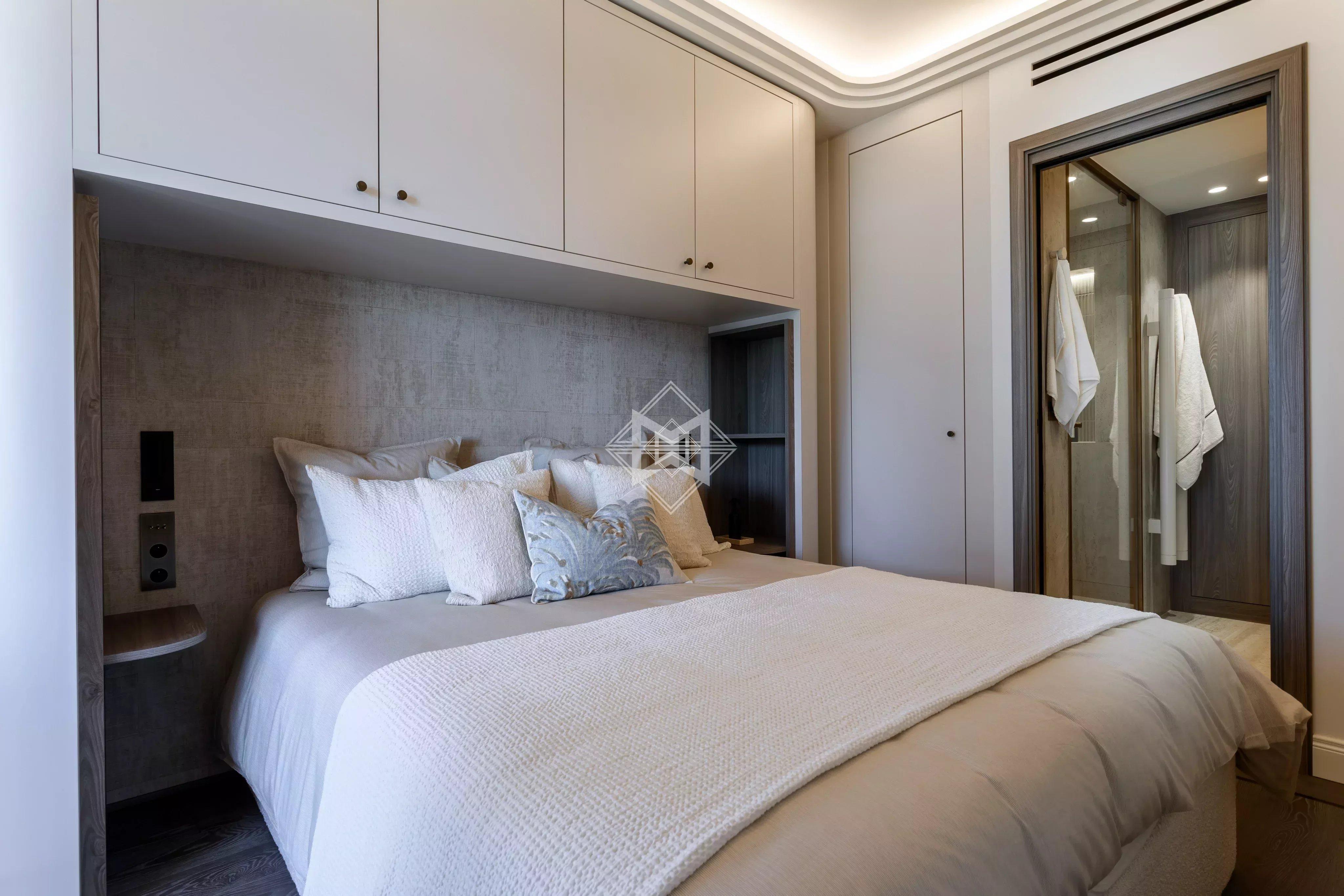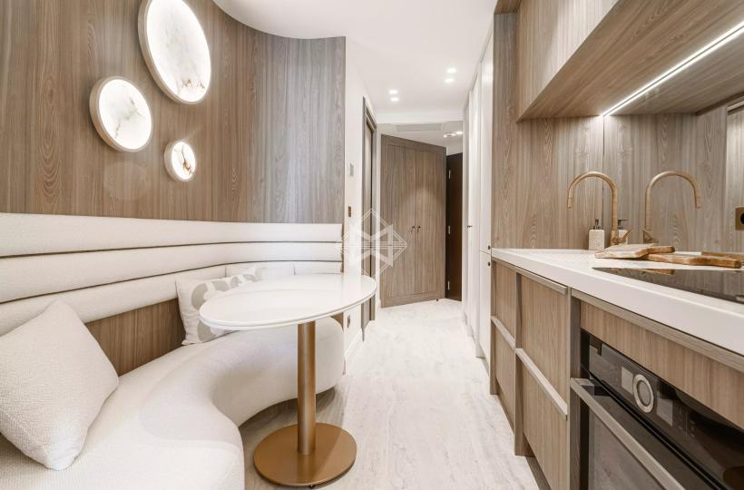 Les finitions haut de gamme, les rangements sur mesure et l’optimisation des volumes soulignent le soin apporté à la rénovation.