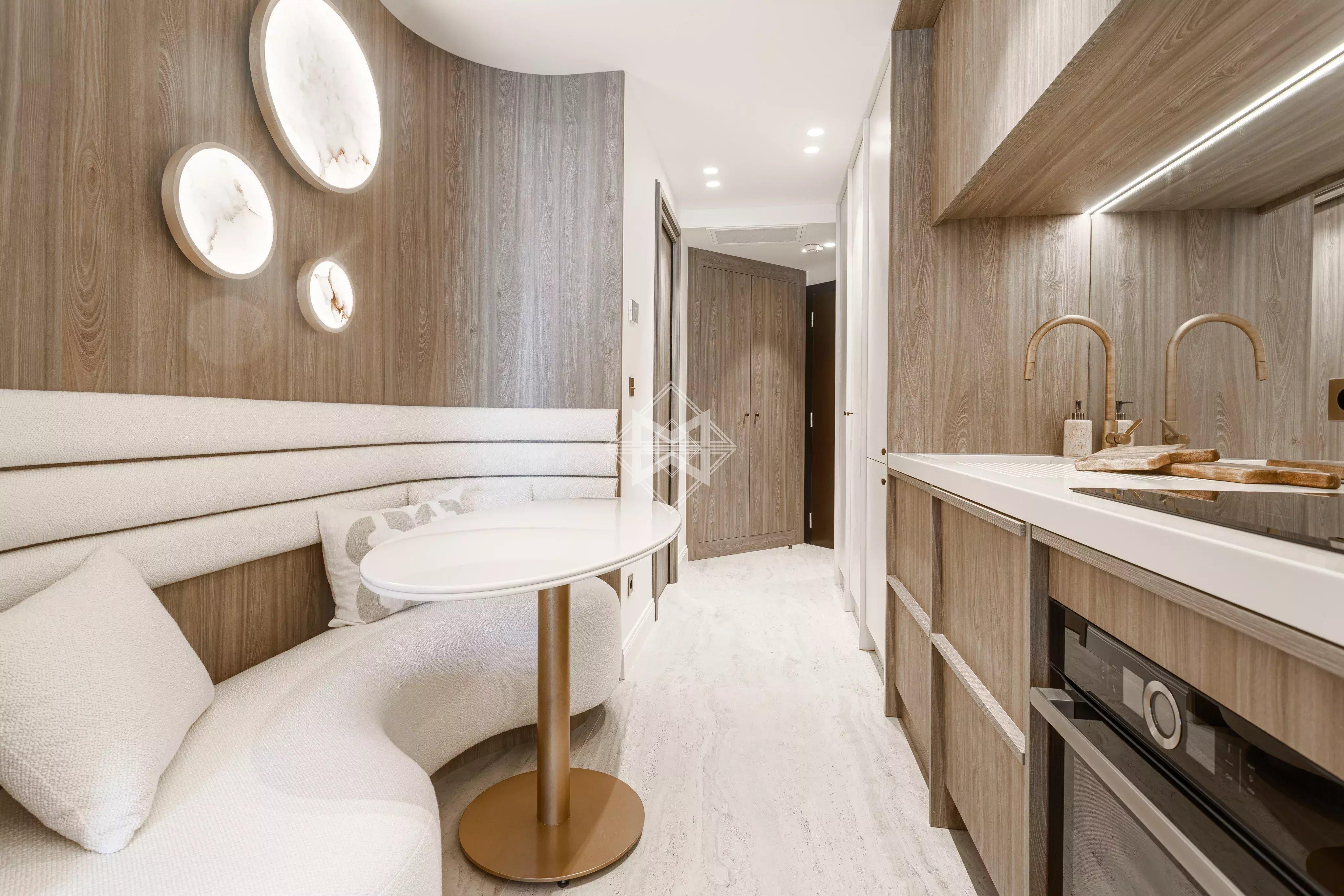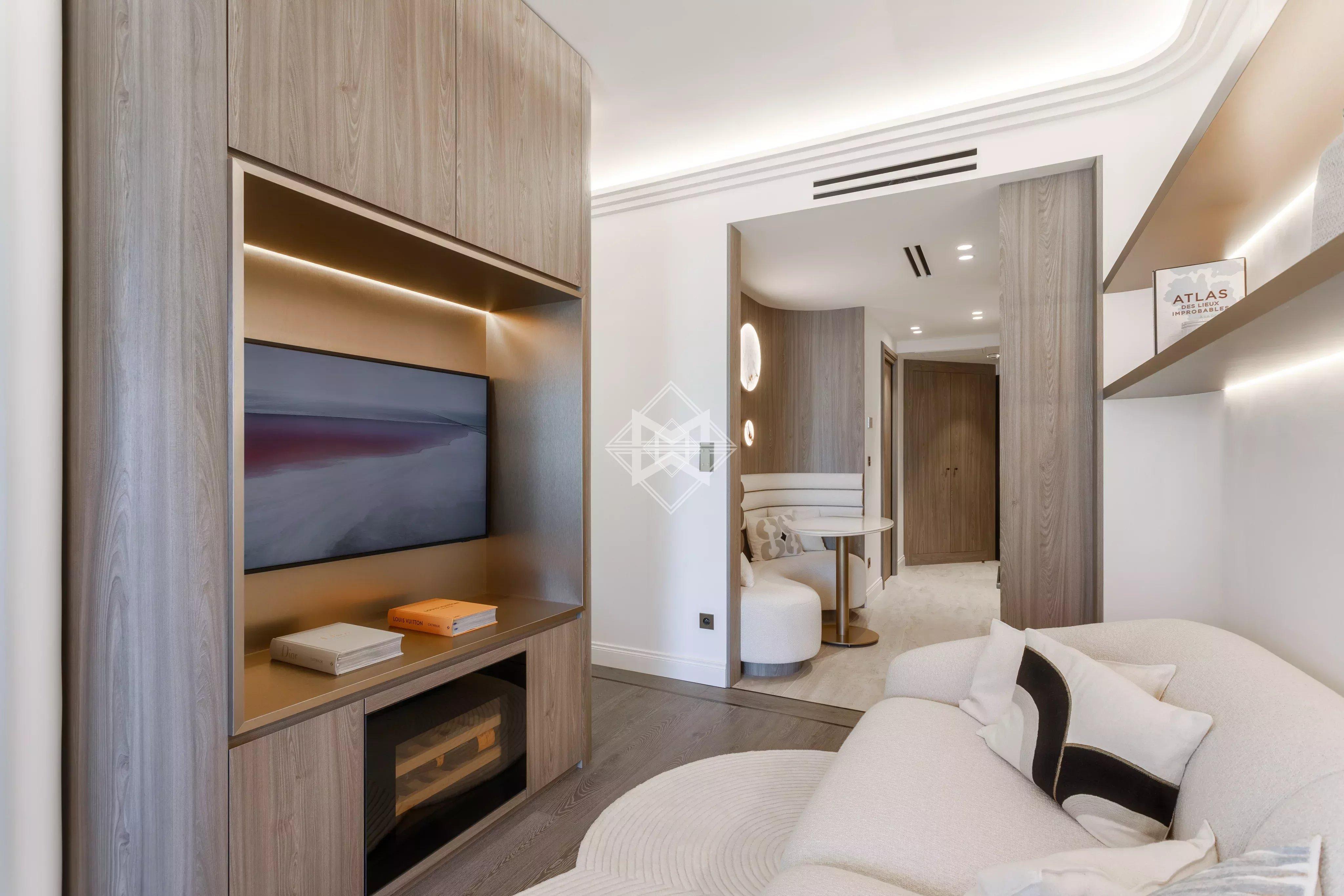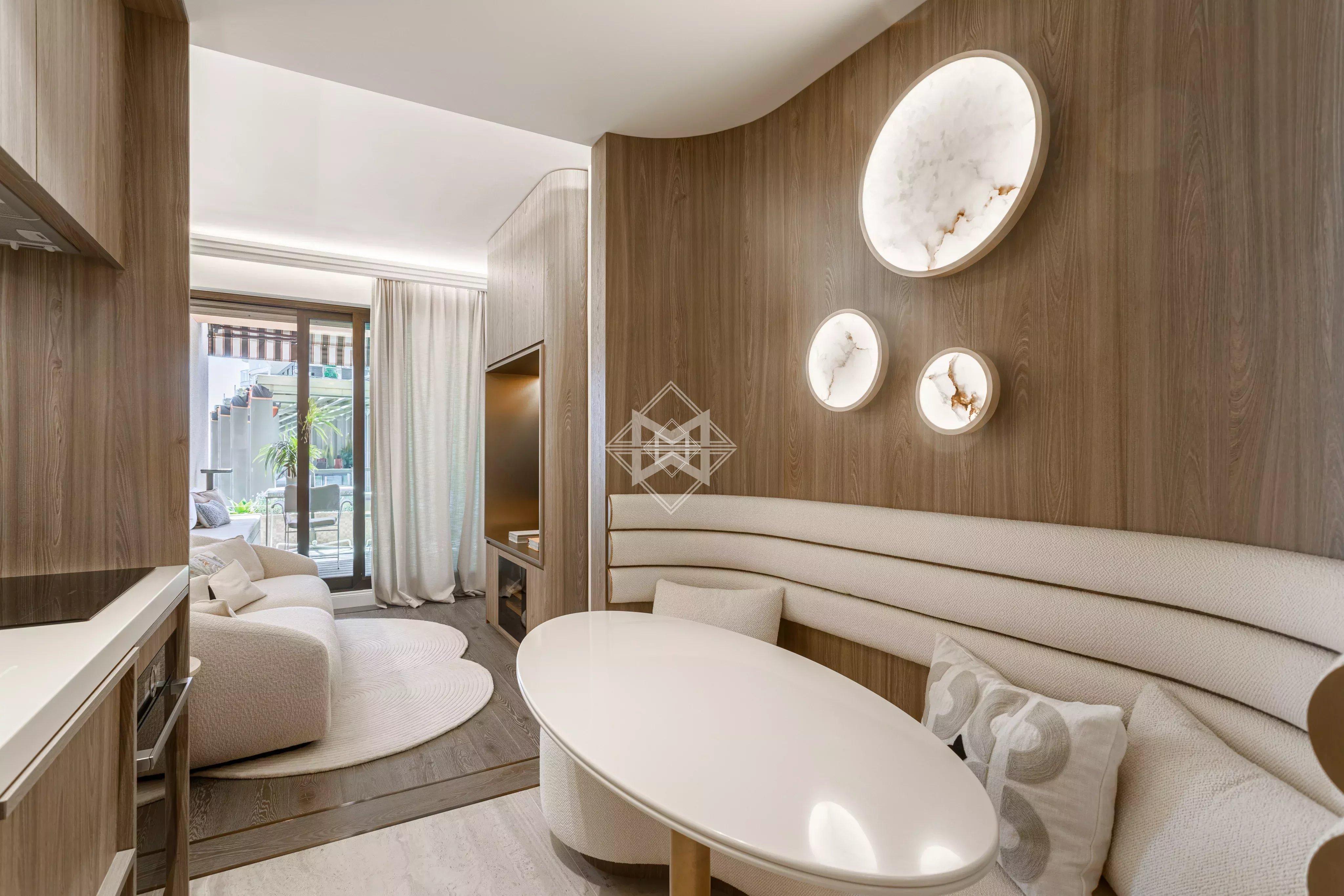 Situé en étage élevé, il offre une atmosphère chaleureuse et une vue sur la mer, le Monte-Carlo Beach.