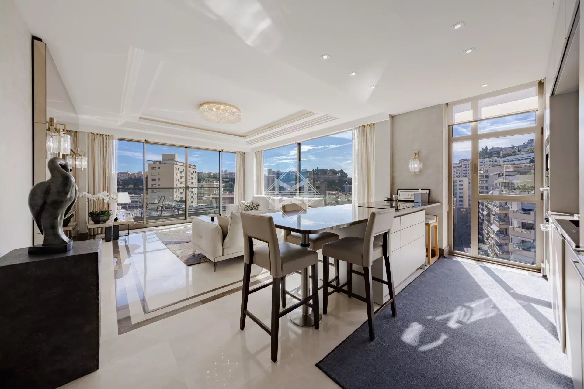 Situé au 8ème étage, d’une surface habitable de 200 m² et de 56 m² de terrasse. L'appartement se compose d’un hall d'entrée, une grande cuisine indépendante entièrement équipée, un double living ouvrant sur la terrasse vue mer, chambre de maitre avec dressing et salle de bain ensuite, 2 autres chambres avec salle de douche. L'appartement est vendu avec une cave et un box double fermé.
