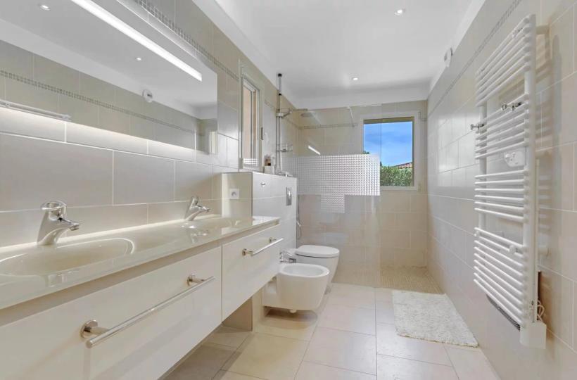 Édifiée en 2013 sur un terrain plat de plus de 1 600 m², la villa développe environ 300 m² habitables.