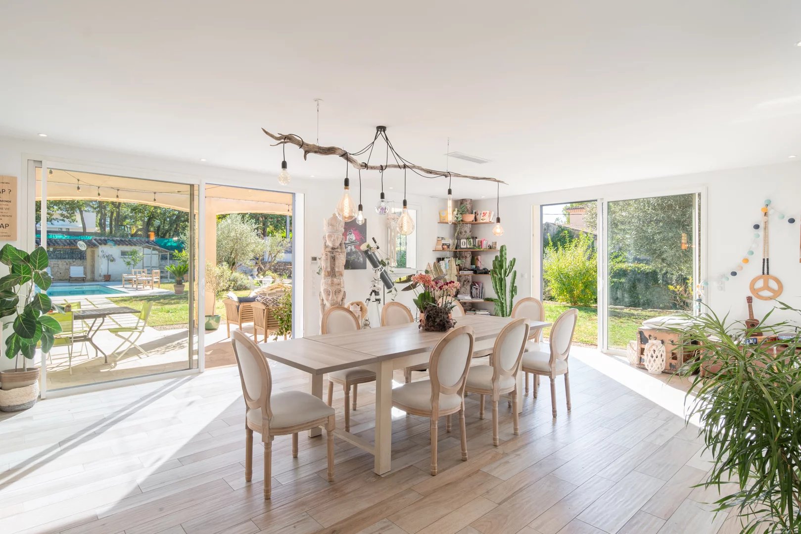 Cette villa propose trois chambres (avec la possibilité d’en créer une quatrième) ainsi qu’une salle de jeux ou espace cinéma. Édifiée sur un terrain de près de 1 500 m², elle dispose d’une agréable piscine accompagnée de son pool house, parfait pour profiter pleinement du soleil et savourer des déjeuners estivaux en famille et entre amis.