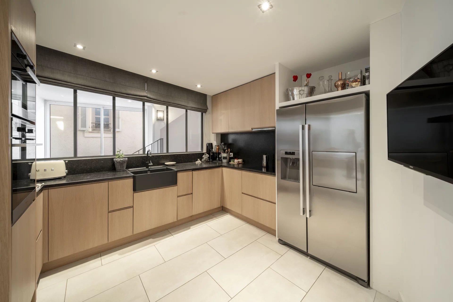Le niveau principal accueille un agréable espace de vie baigné de lumière, composé d’un salon chaleureux et d’une cuisine ouverte entièrement équipée, prolongé par un espace repas convivial. L’ensemble s’ouvre sur une jolie terrasse intimiste, véritable prolongement de la maison, idéale pour profiter des douces soirées méditerranéennes.