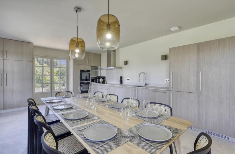 Cette villa, entièrement rénovée en 2021, se compose notamment d'un vaste séjour, ainsi que d'une grande cuisine ouverte et totalement équipée. La demeure propose également 4 chambres en suites, ainsi qu'une suite complètement indépendante.