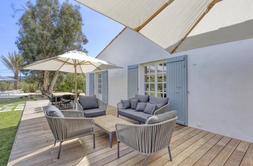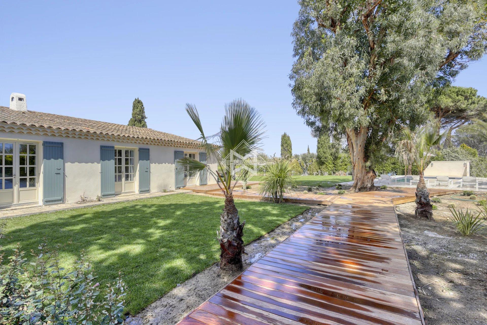 Idéalement située à seulement 800 m de la plage de Pampelonne, superbe villa de charme d'environ 150 m2 dans un écrin de nature sur un vaste terrain plat de de 7130 m2.